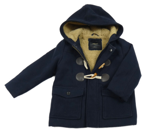 Tmavomodrý flaušový zateplený kabát s kapucňou Next