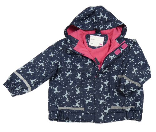 Tmavomdorá vodeodolná zateplená bunda s jednorožcami a kapucňou Kiki&Koko