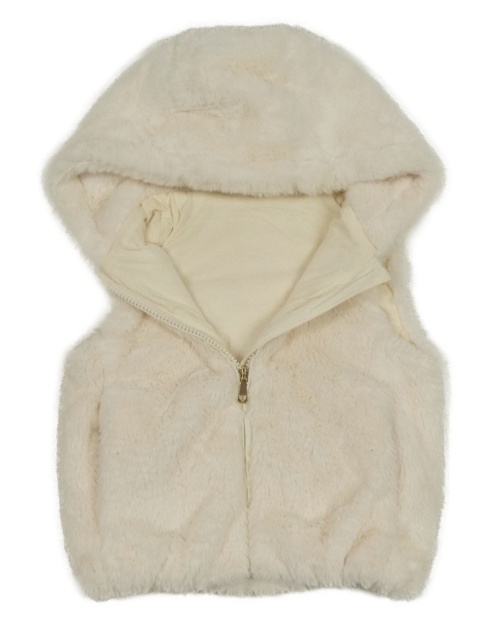 Krémová kožušinová podšitá vesta s kapucňou Nutmeg