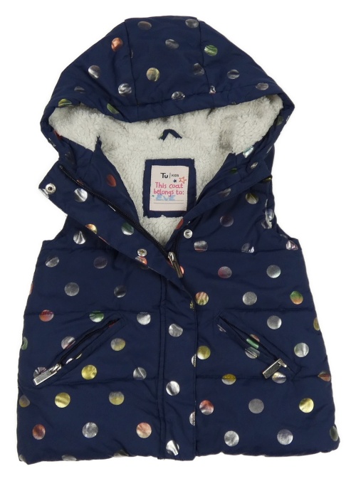 Tmavomodrá bodkovaná á šušťáková zateplená vesta s kapucňou TU