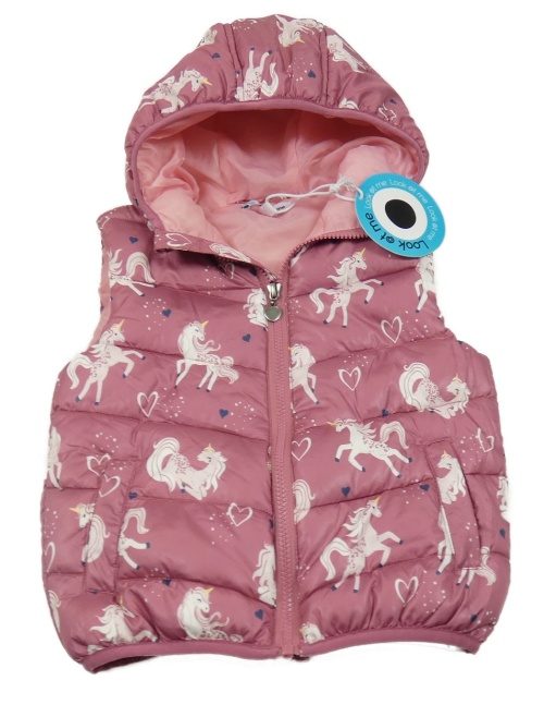 • Nové - staroružová prešívaná šušťáková zateplená vesta s jednorožcami a srdiečkami a kapucňou