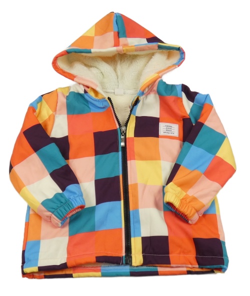 Farebná kockovaná softshellová bunda s nášivkou a kapucňou