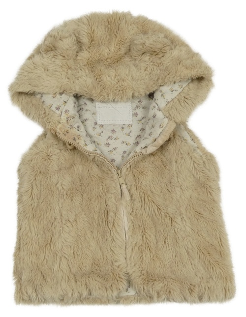 Smotanová kožušinová podšitá vesta s kapucňou s uškami NUTMEG