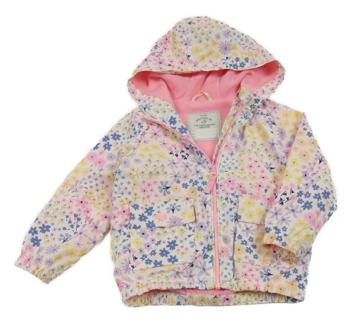 Bielo-ružovo-modrá kvetovaná šušťáková jarná bunda s kapucňou George