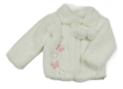 Bílý kožešinový podšitý kabátek s motýly