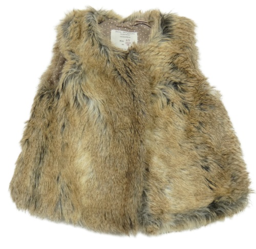 Béžovo-sivá kožušinová podšitá vesta Zara