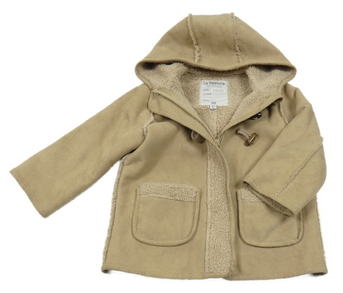 Hnědobéžový semišový zateplený kabát s kapucňou LA REDOUTE
