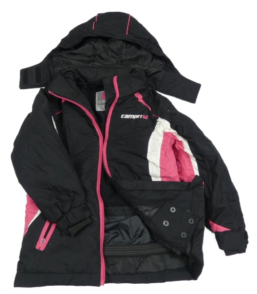 Čierno-bielo-ružová šušťáková lyžiarska bunda s kapucňou Campri