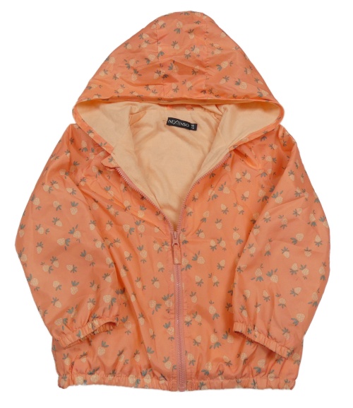 Oranžová šušťáková jarná bunda s jahodami a kapucňou