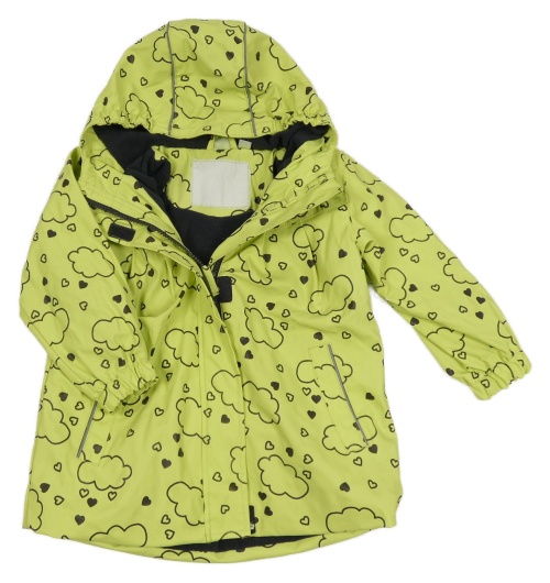 Zelenožlutá vzorovaná nepromokavá jarná bunda s mraky a kapucňou x-mail