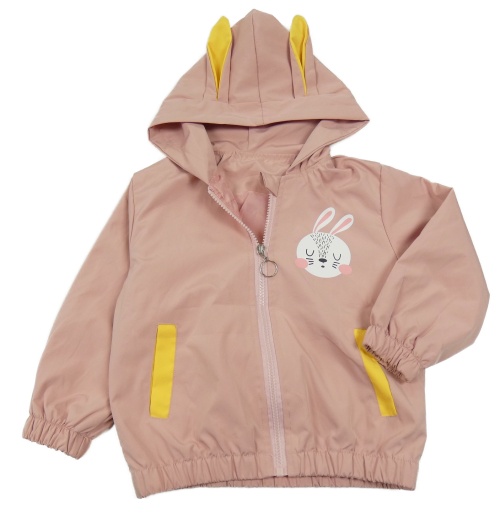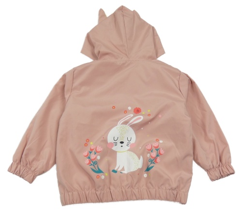 Svetloružová šušťáková jarná bunda s králikom a kapucňou s ušima