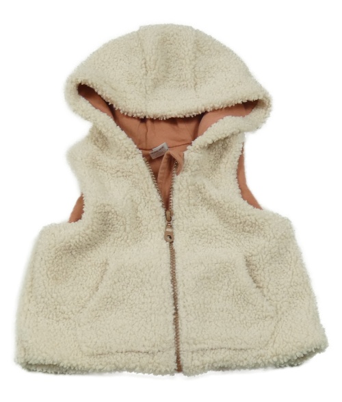 Béžová huňatá podšitá vesta s kapucňou Tu