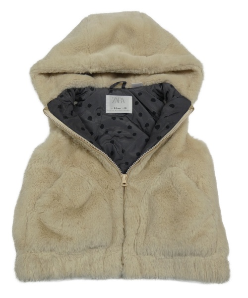 Béžová chlpatá zateplená prepínaci vesta s kapucňou Zara