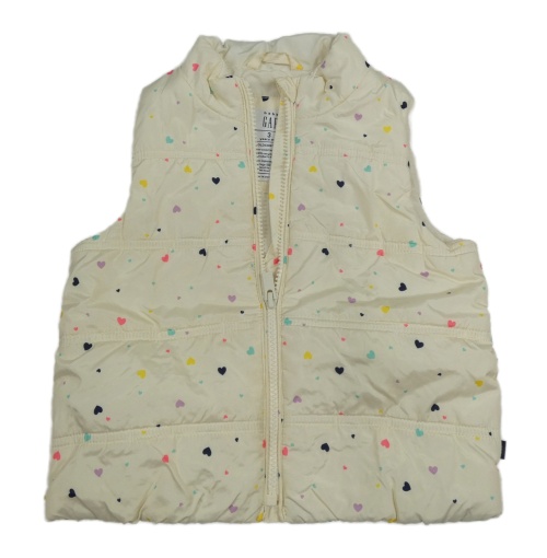 Smotanová prešívaná šušťáková zateplená vesta s farebnými srdiečkami GAP