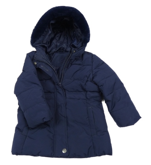 • Tmavomodrý prešívaný šušťákový zimný kabát s kapucňou s kožešinou Kiki&Koko
