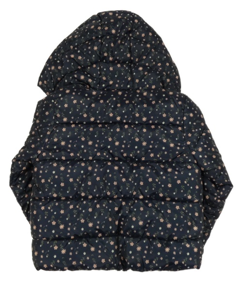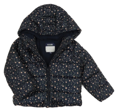 • Tmavomodrá šušťáková prešívaná zimná bunda s kvietkami a kapucňou Kiabi
