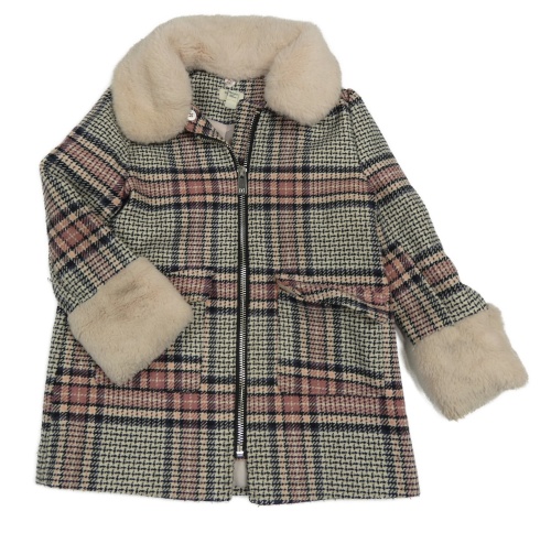 Svetloružová -tmavomodrý kockovaný vlnený kabát s kožúškom River Island