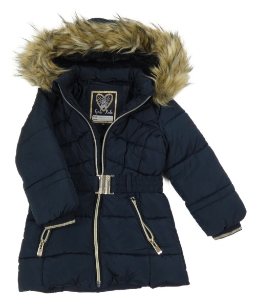 Tmavomodrá šušťáková zimná bunda s opaskom a kapucňou s kožešinou C&A