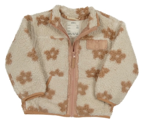 Béžovo-strarorůžová kvetovaná huňatá bunda M&S