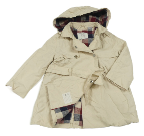 Smotanový zateplený kabát s kapucňou a opaskom Zara