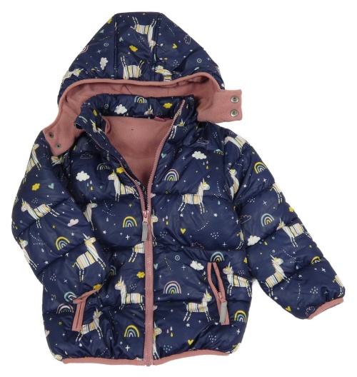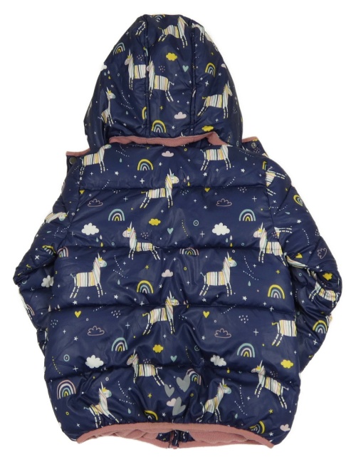 Tmavomodrá šušťáková zimná bunda s jednorožcami a kapucňou