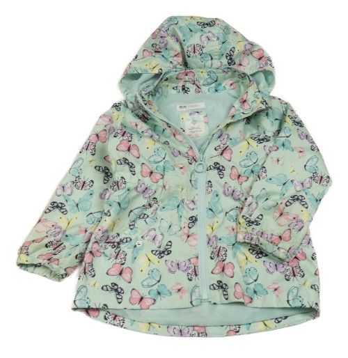 Svetlozelená šušťáková jarná parka s motýly a odopínacíá kapucňou H&M
