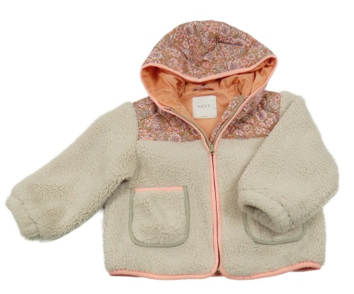 Béžovo-oranžová huňato/šusťáková podšitá bunda s kapucňou Next