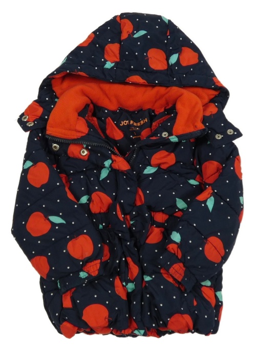 • Tmavomodrá šušťáková prešívaná zimná bunda s jablíčky a kapucňou Joe Fresh