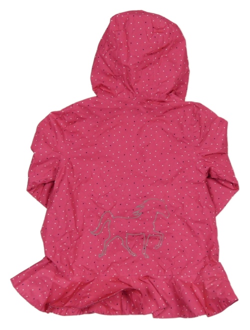 • Tmavoružová šušťáková jarná parka so srdiečkami s koňmi a kapucňou Topomini