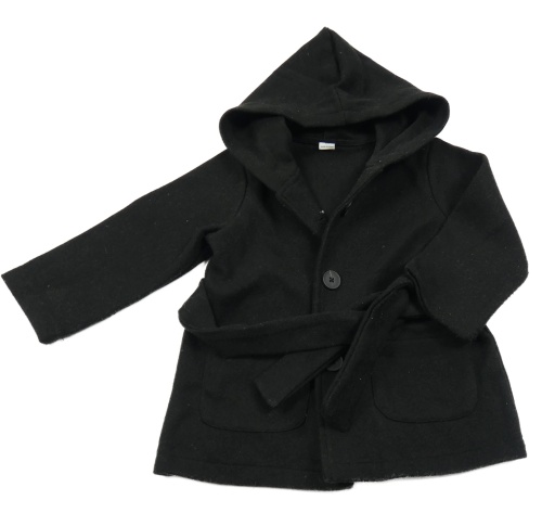 Čierny flaušový kabát s opaskom a kapucňou SHEIN