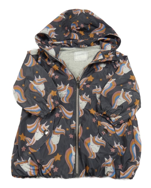 Antracitová šušťáková jarná parka s jednorožcami a kapucňou Next