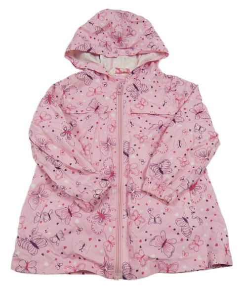 Svetloružová šušťáková jarná bunda s motýlikmi a kapucňou