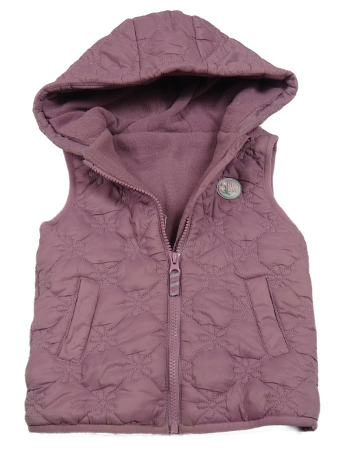 • Fialová kvetinová šušťáková zateplená vesta s nášivkou a kapucňou Dunnes