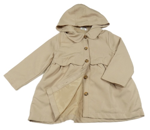 Béžový jarný kabát s golierikom a kapucňou so cute