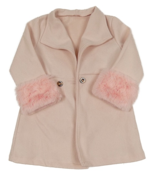 Svetloružový flaušový kabát s kožešinou SHEIN