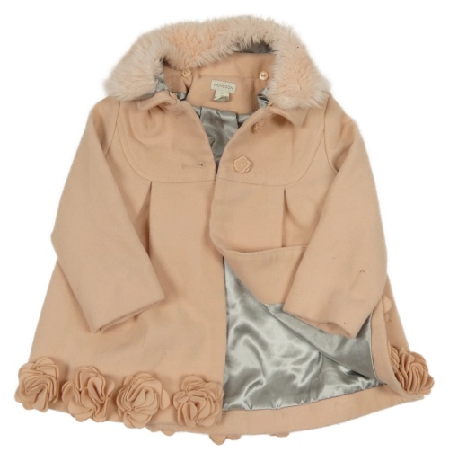 Lososoový flaušový podšitý kabát s kožešinou a kvetmi Monsoon