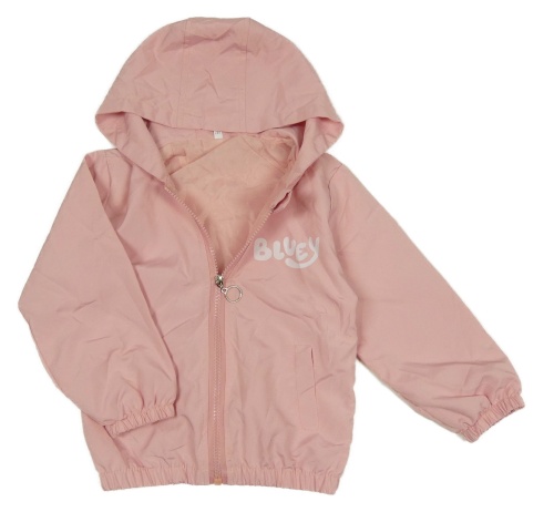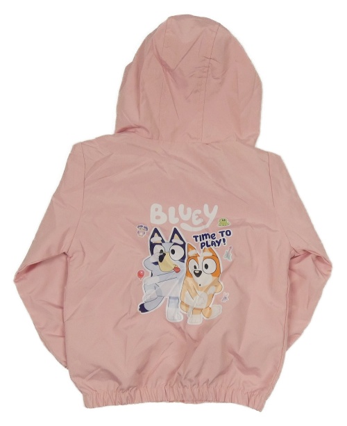 Svetloružová šušťáková jarná bunda s Bluey a kapucňou