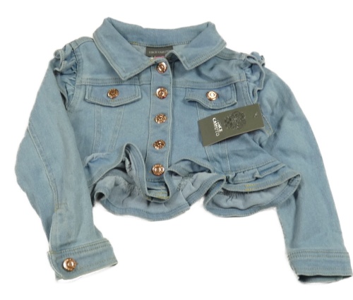 Nové - Svetlomodrá rifľová crop bunda s volánikmi Vince Camuto