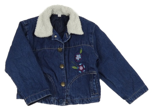 Tmavomodrá rifľová zateplená bunda s výšivkami květin