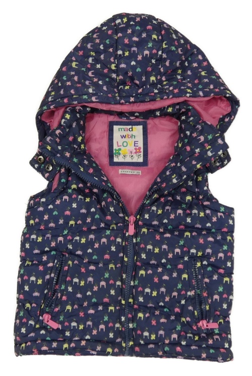 • Tmavomodro-farebná vzorovaná šušťáková zateplená vesta s kapucňou Crafted