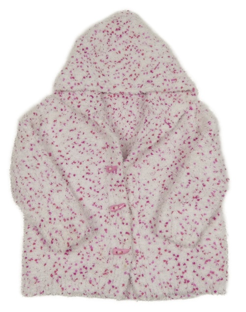 Bílo-růžový melírovaný propínací chlupatý kabátek s kapucňou