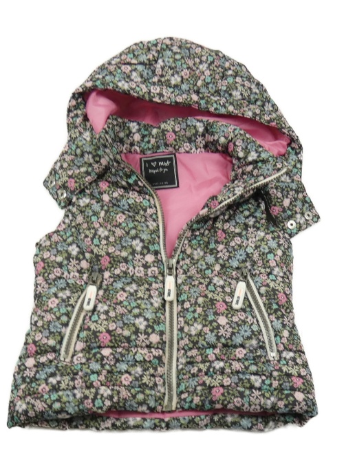 Čierna kvetovaná šušťáková zateplená vesta s kapucňou H&M
