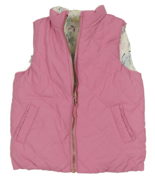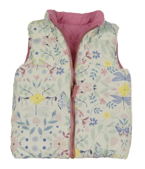 Smotanová prešívaná šušťáková zateplená obojstranná vesta s kvietkami a motýlikmi Nutmeg