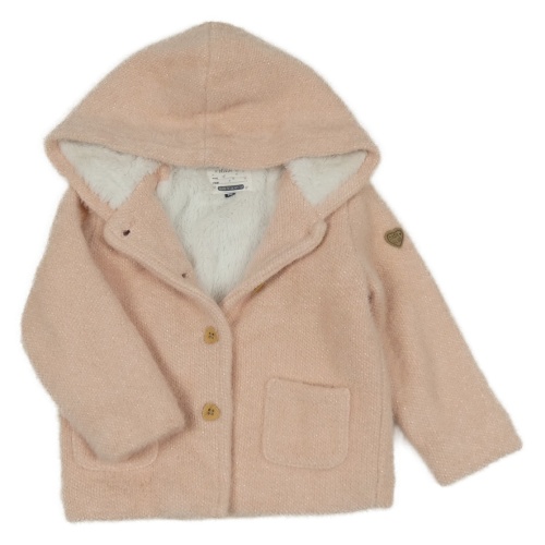 Svetloružový zateplený chlpatý trblietavý kabát s kapucňou C&A