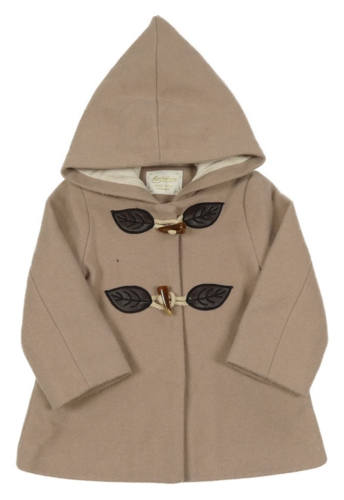 Pudrový flaušový podšitý kabát s listami a kapucňou