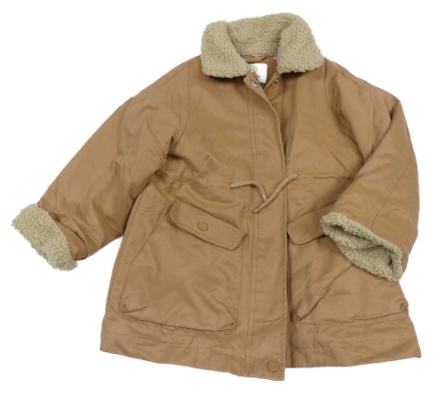 Hnedá šušťáková jarná zateplená parka s huňatým golierom Zara