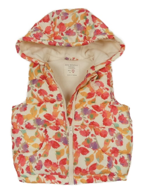 Smetanovo-ružová vzorovaná šušťáková zateplená vesta s kapucňou Zara