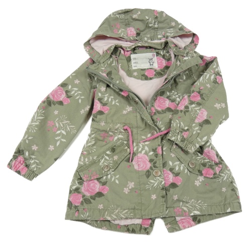 Kaki-ružová kvetovaná plátenná jarná parka s kapucňou DopoDopo