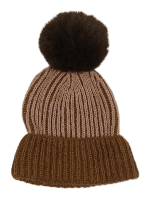 Hnedo-staroružová rebrovaná pletená čapica s brmbolcom Next