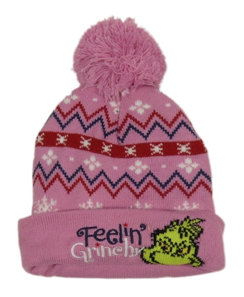 Ružová vzorovaná čapica s Grinchem a brmbolcom